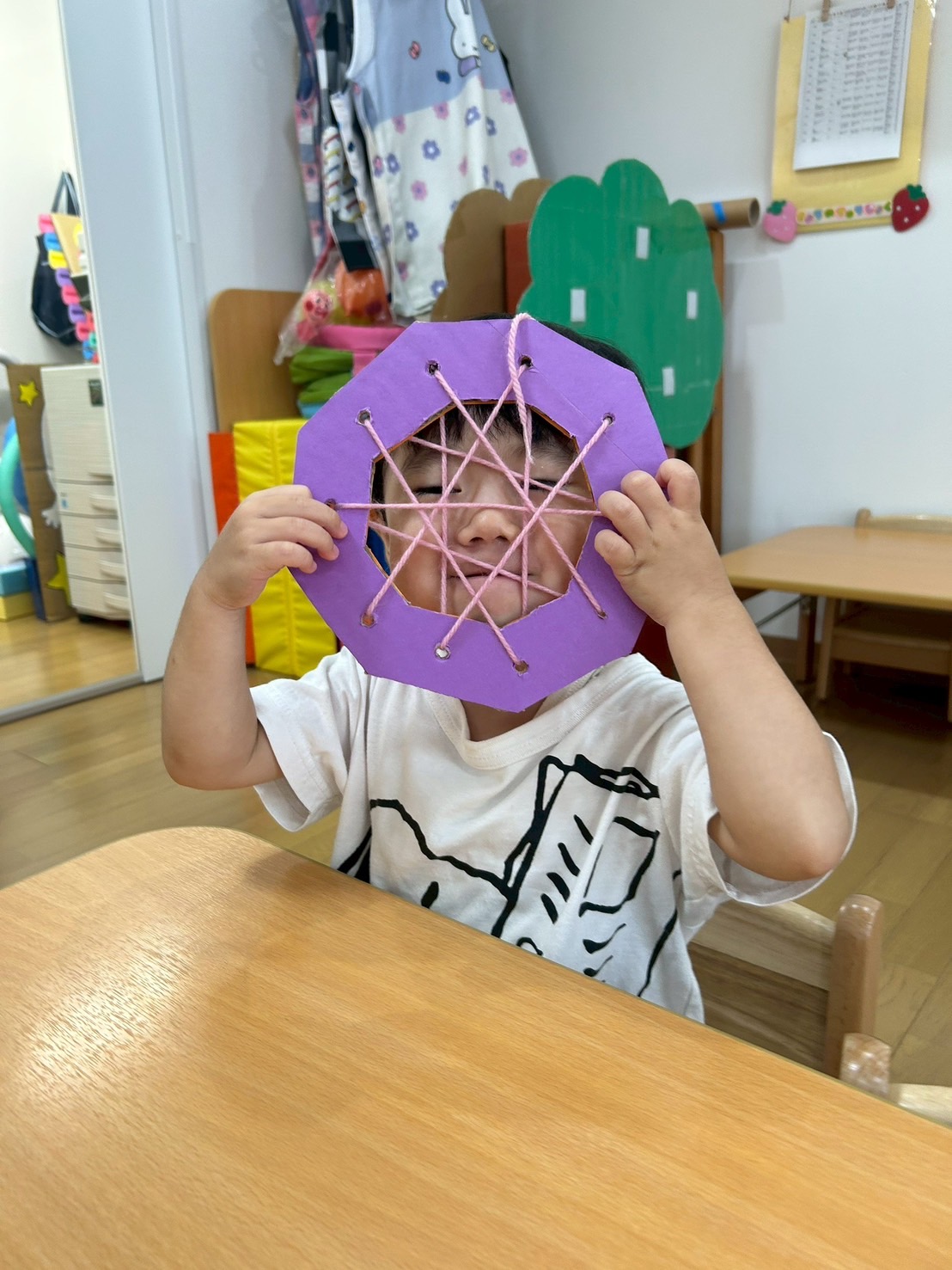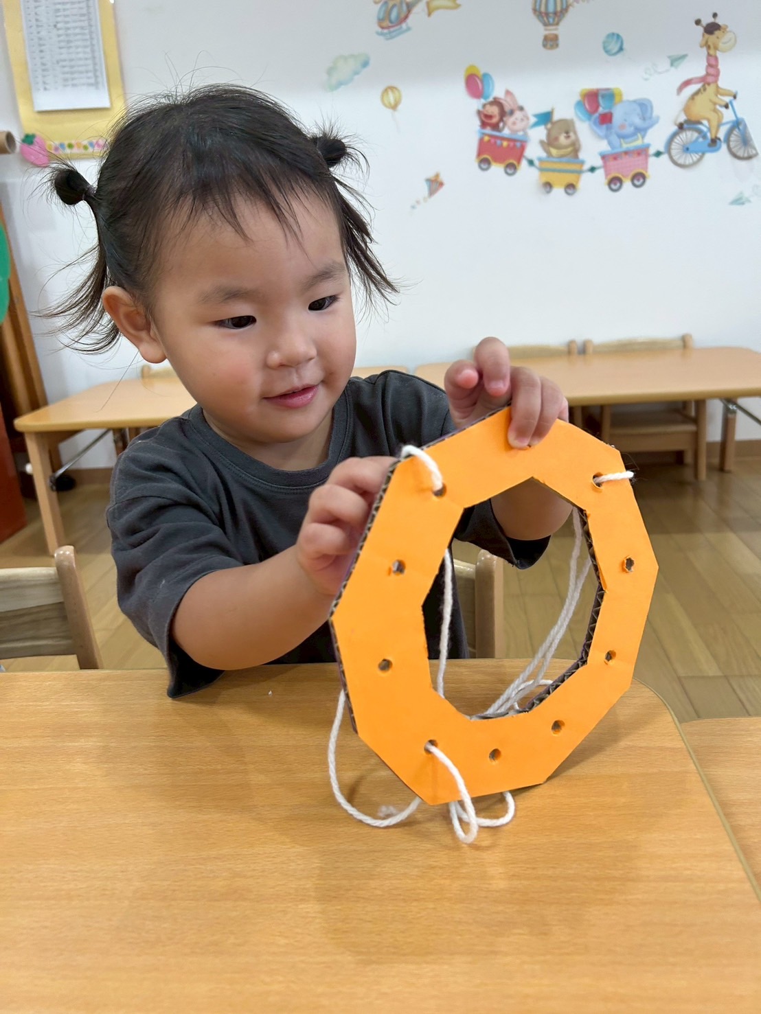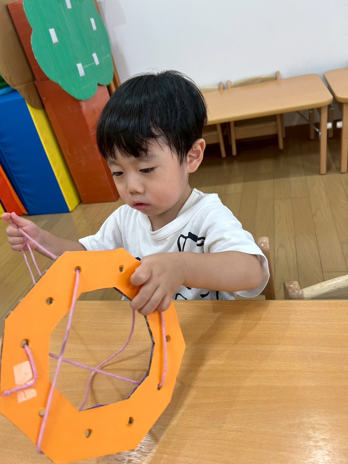2歳児のお友だちはハサミや紐通しにも挑戦しました👏🏻