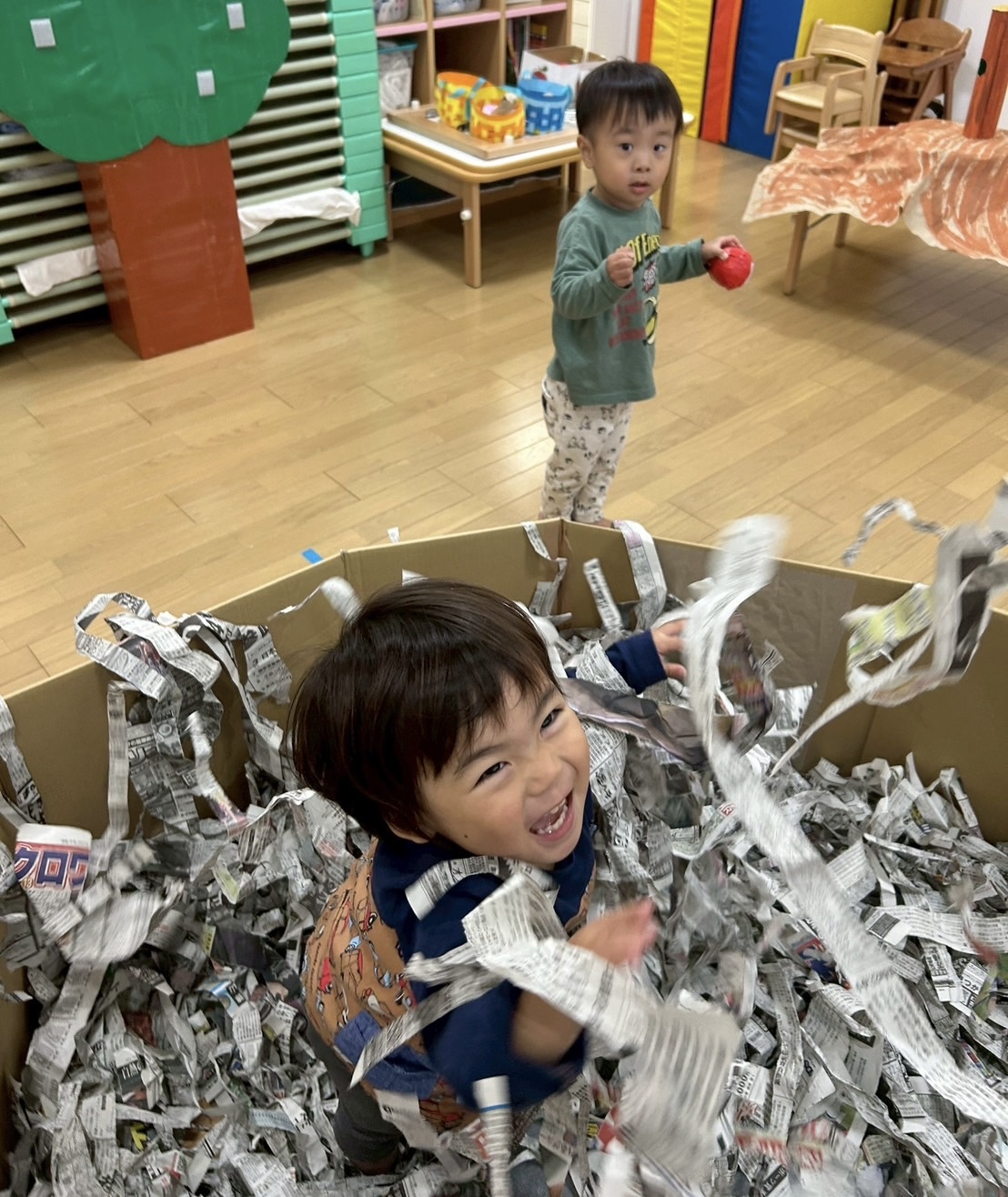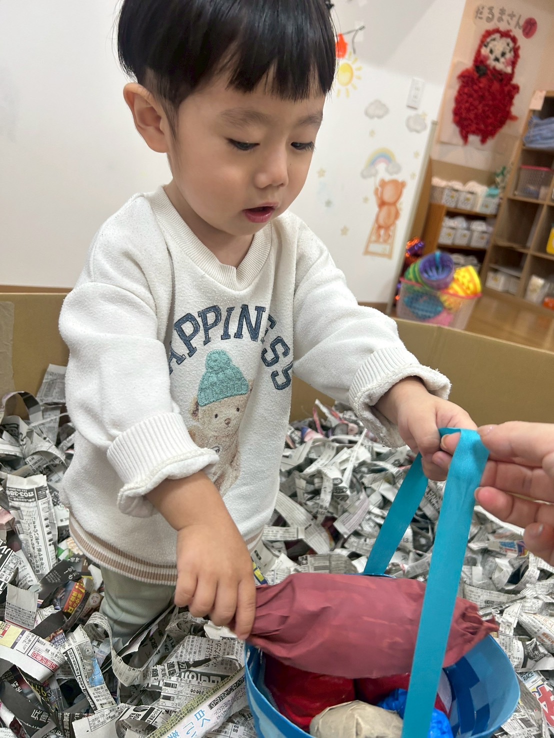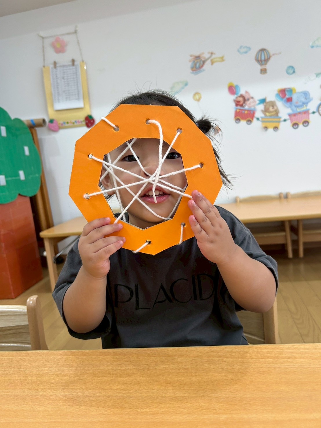 2歳児のお友だちはハサミや紐通しにも挑戦しました👏🏻