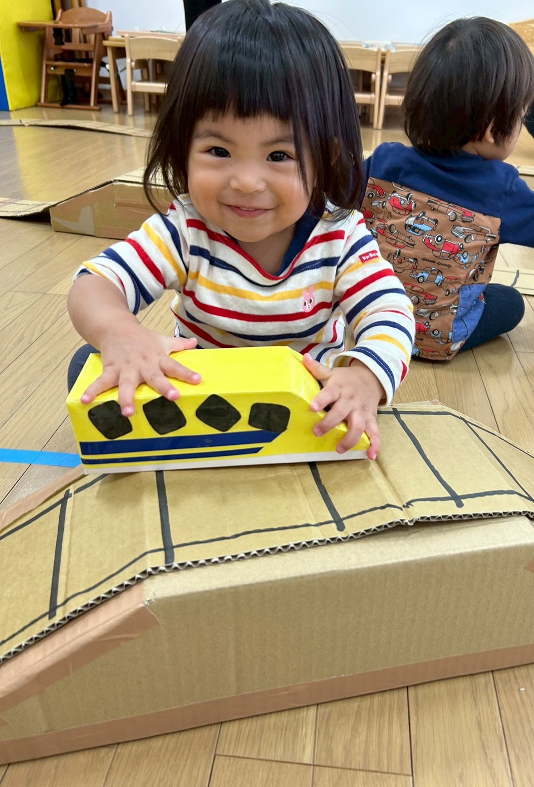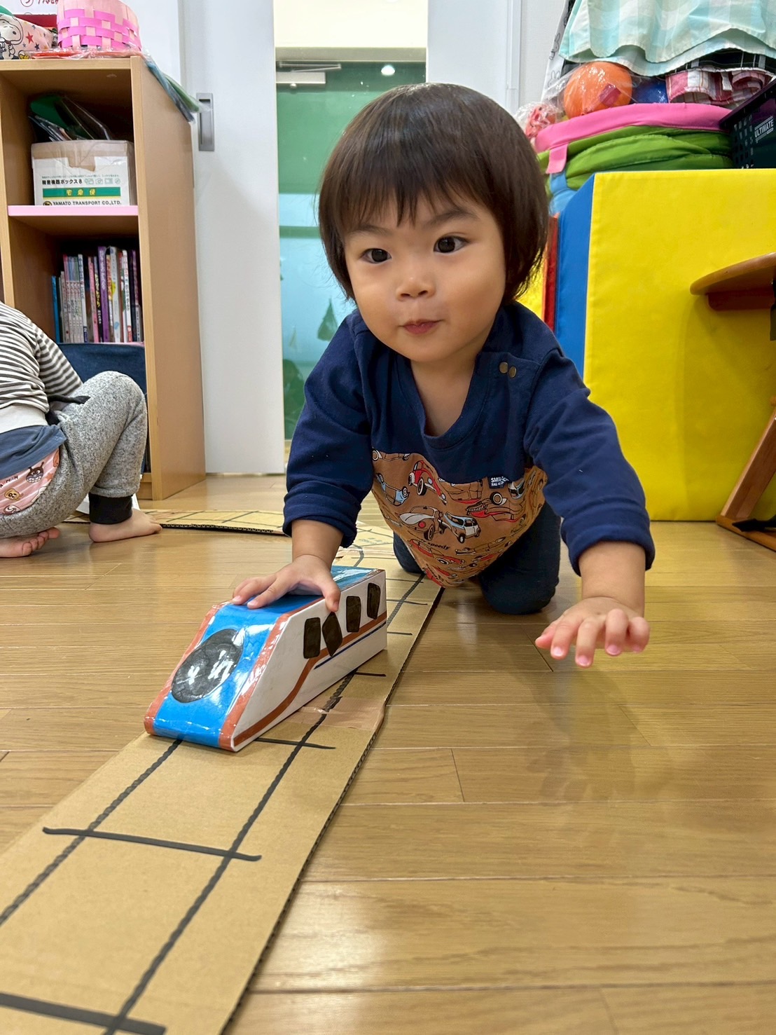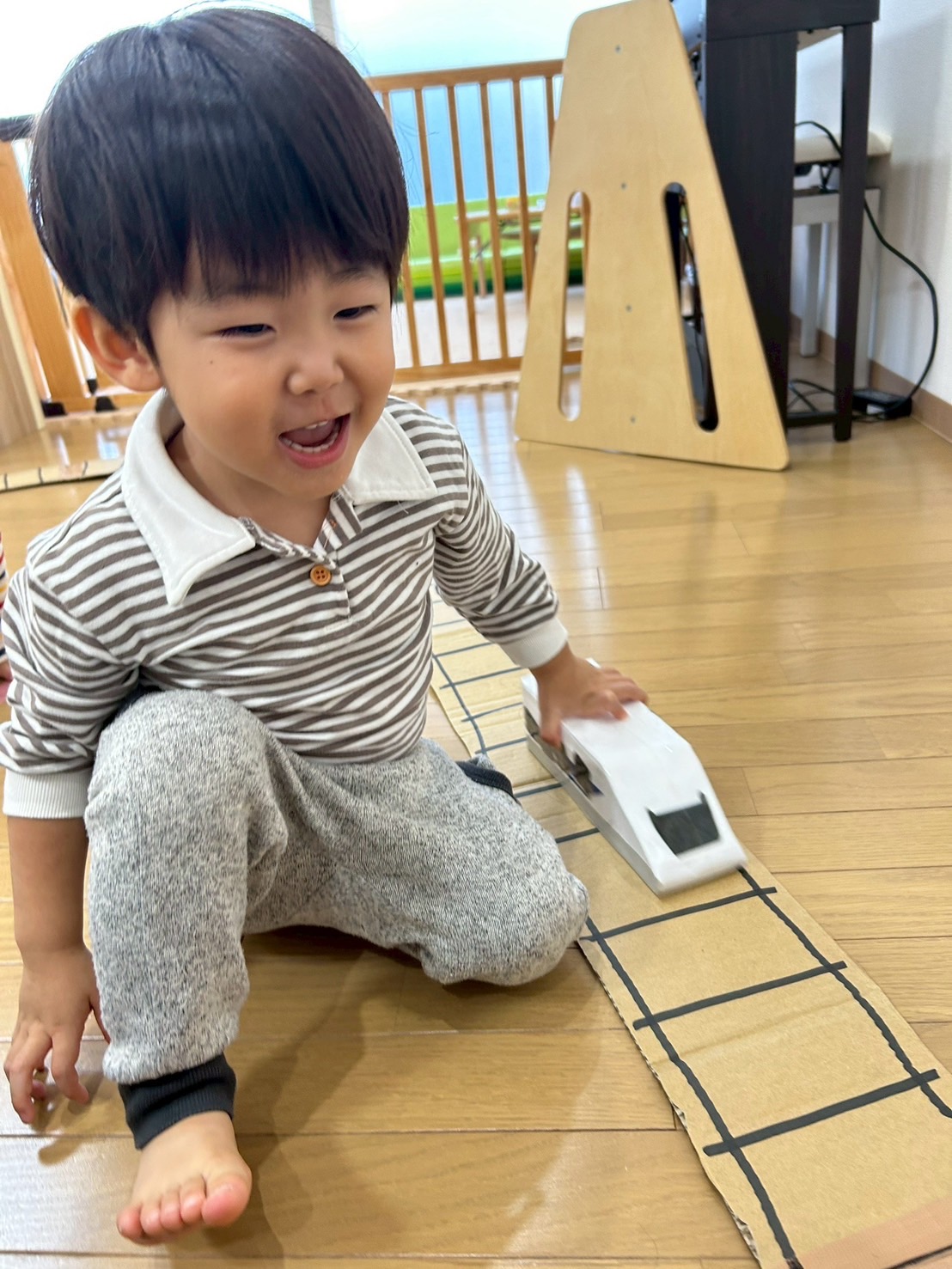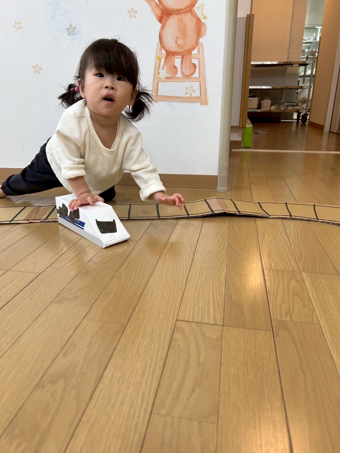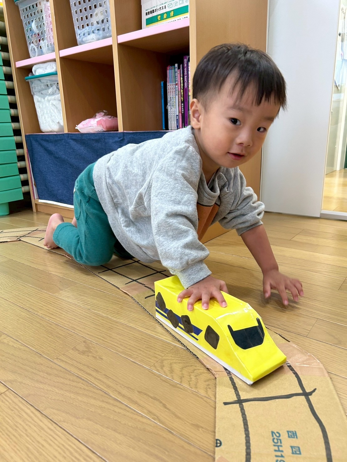 「ガタンガタン」と効果音を言いながら笑顔で走らしていました🚃🚅
