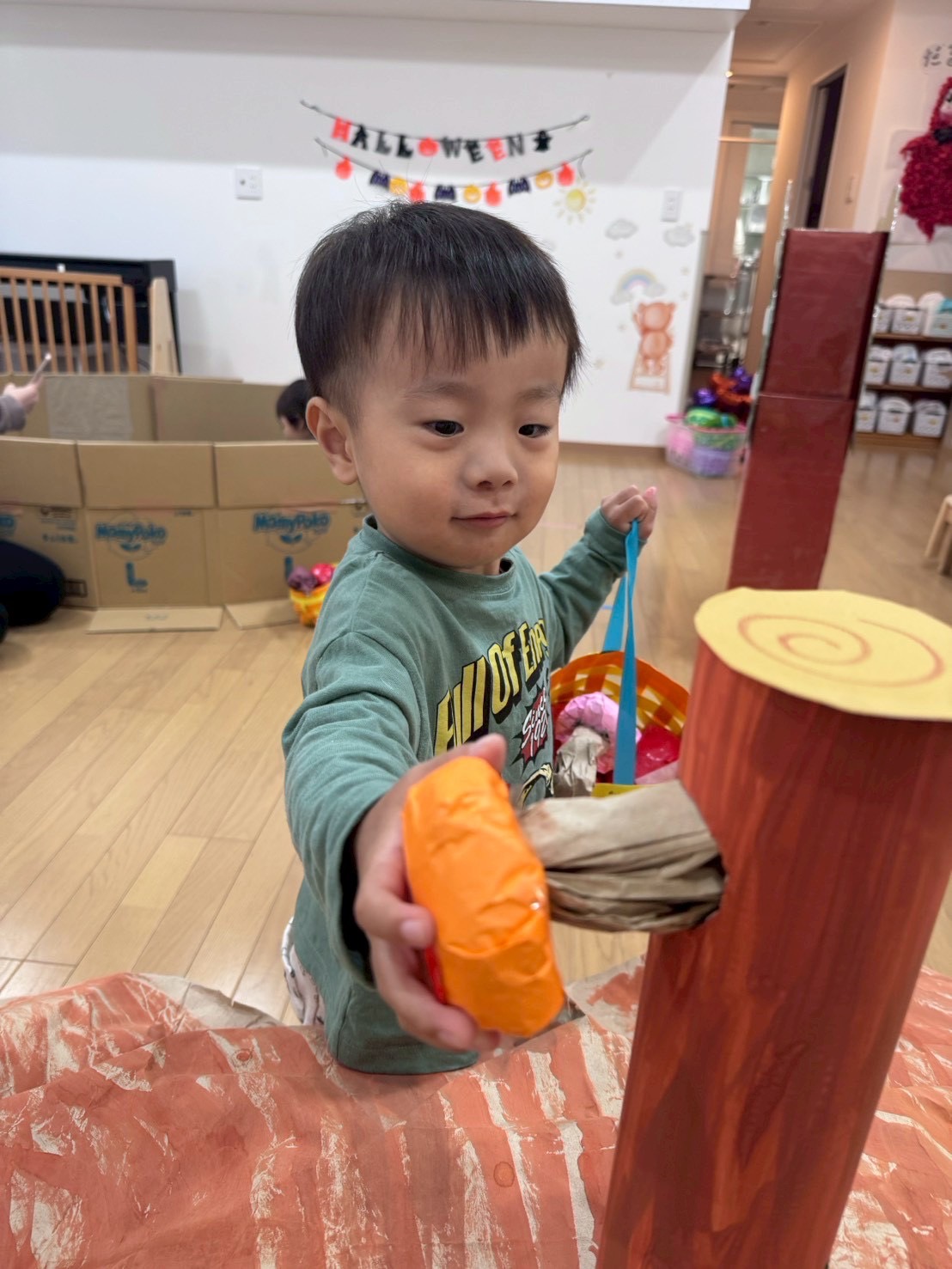 食欲の秋ってことでみんなできのこ🍄さつまいも🍠運動会ごっこのりんご🍎を使って収穫遊びをしました🍂