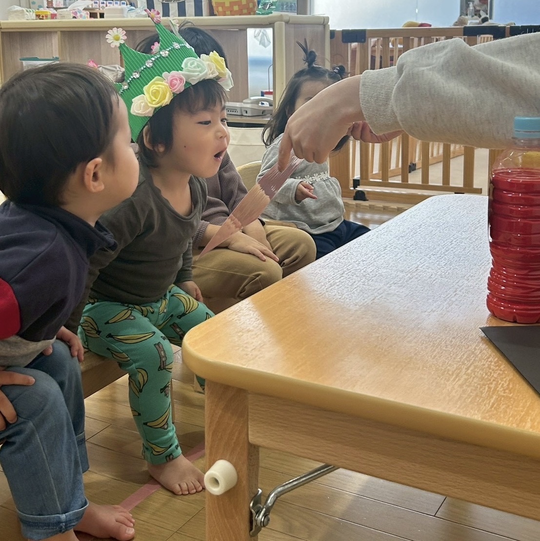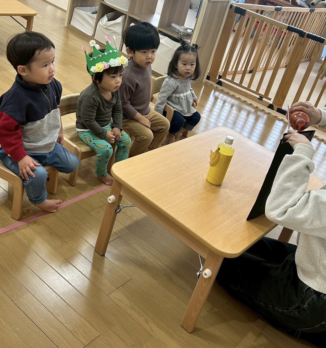 みんなから🎶Happy Birthday ♬のお歌のプレゼントをもらい保育士からのプレゼント“マジック”にびっくり🫢