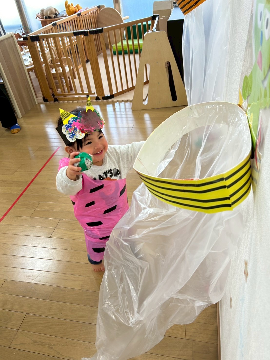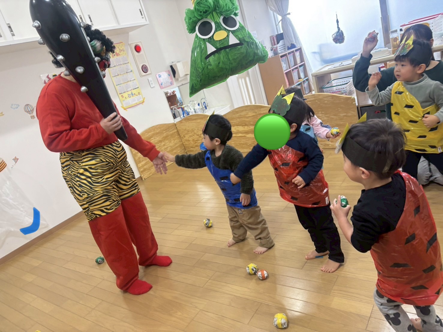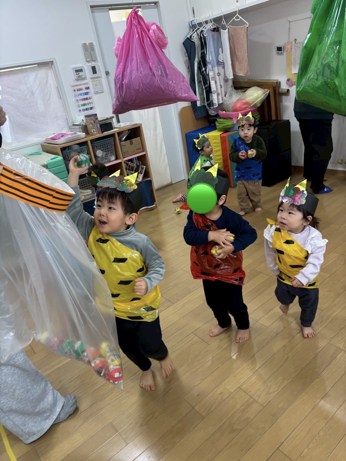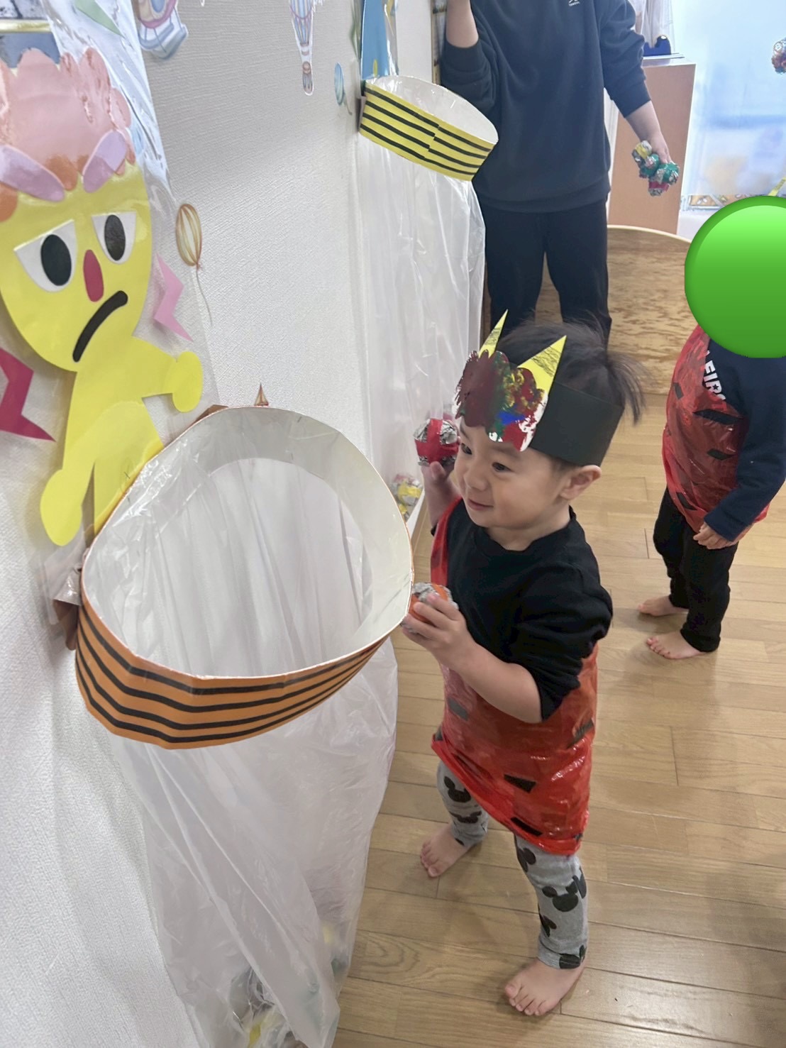 「おにはーそとー」「ふくはーうちー」と大きな声でボールを投げてゲーム遊びを楽しんでくれました。