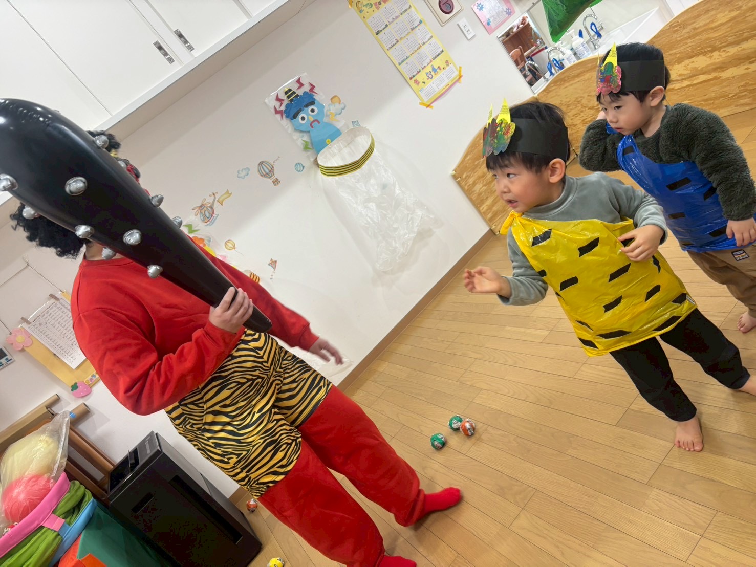 節分が近づくにつれ「先生は隠れてていいよ」「Yくん、Sくんがやっつけてあげる」と気合十分の子どもたち‼️