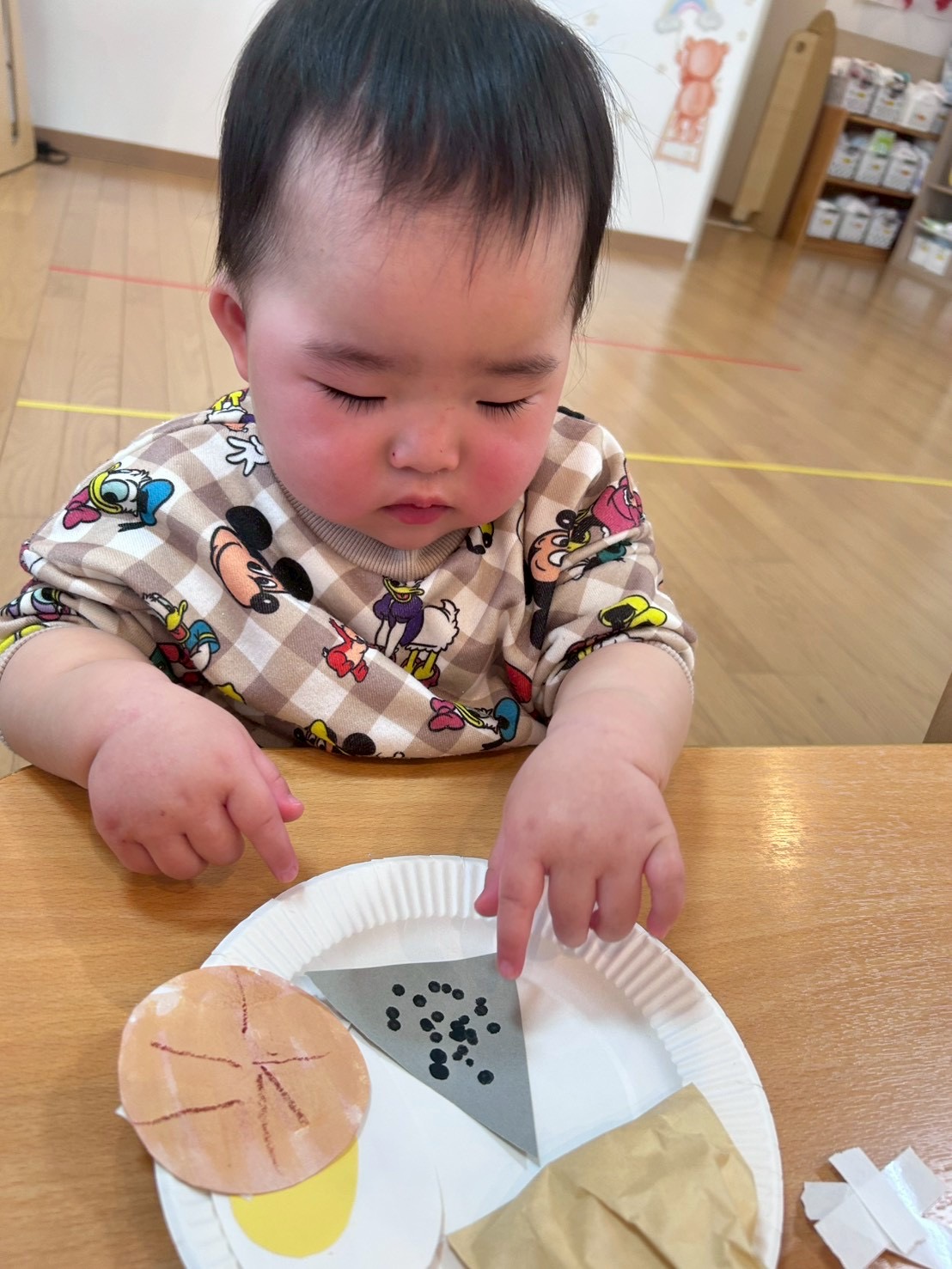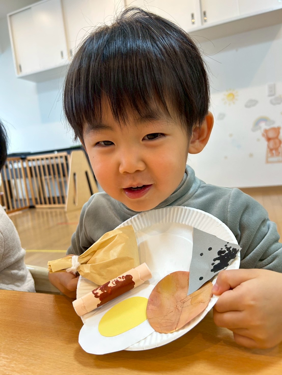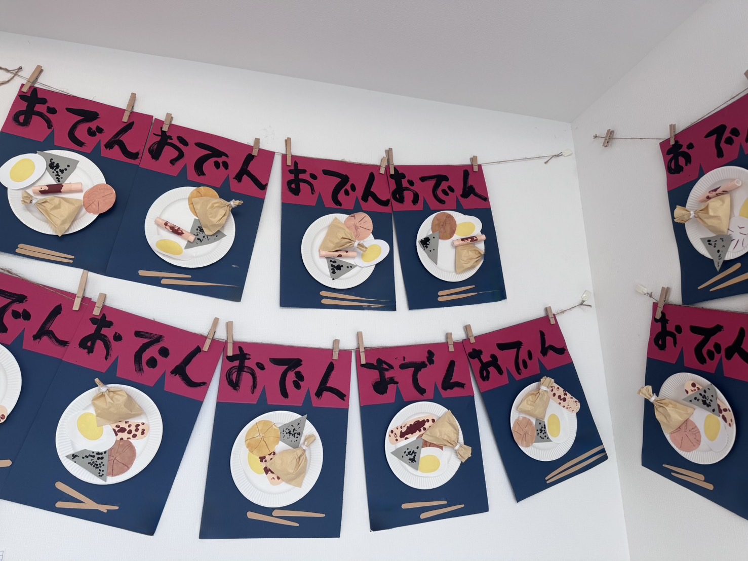 パンダ組さんは少しずつハサミも上手に使えるようになり2月の壁面製作は“おでん”を作りました‼️