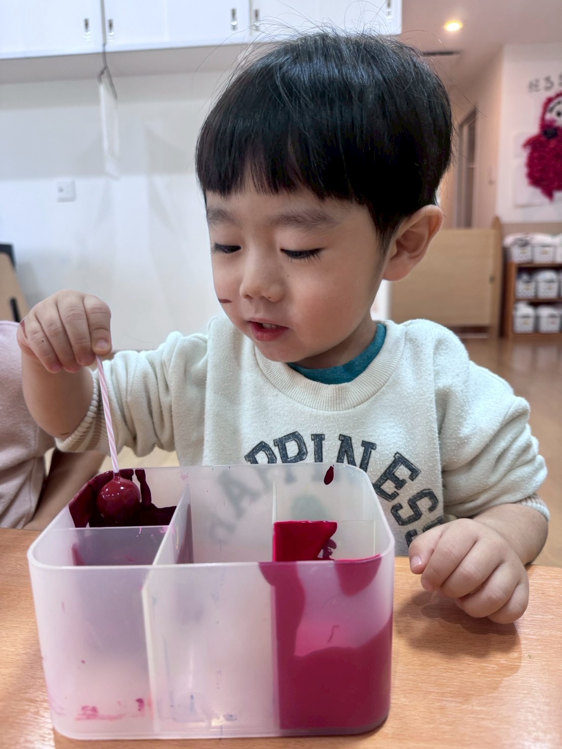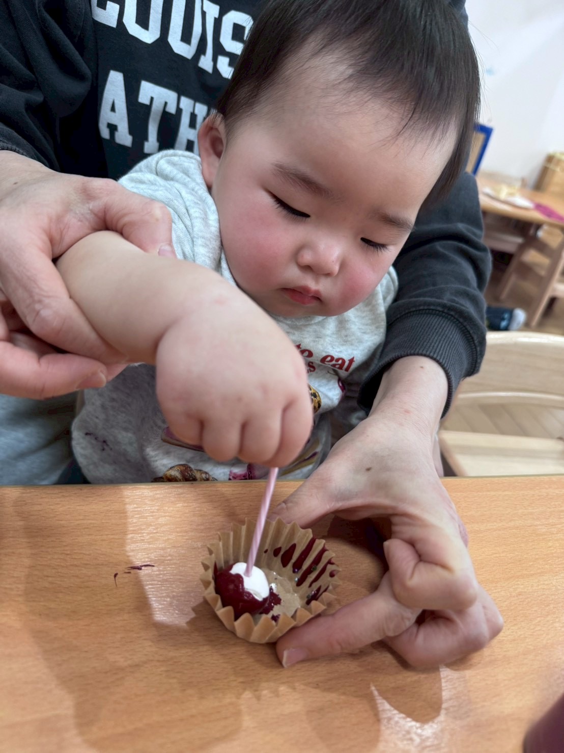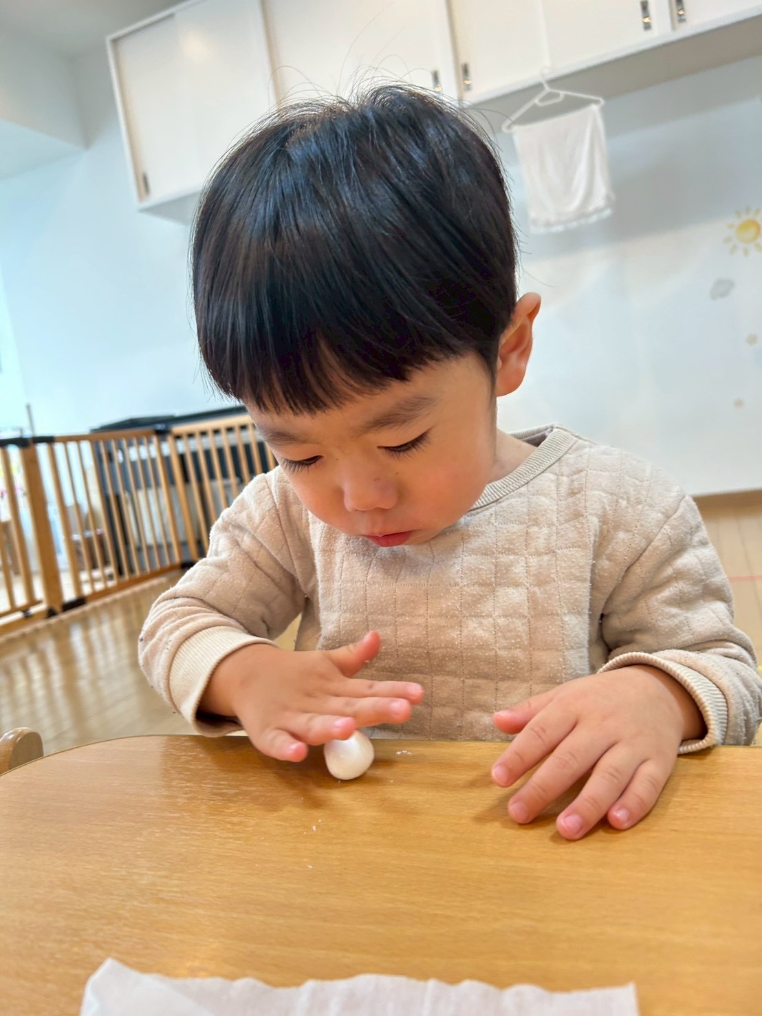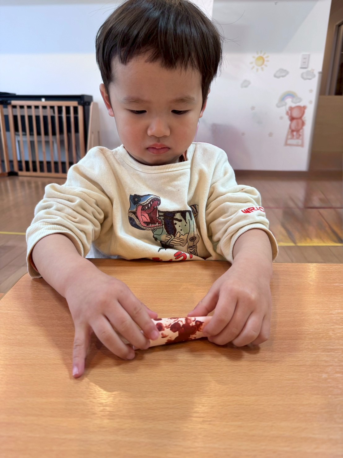 パンダ組さんは少しずつハサミも上手に使えるようになり2月の壁面製作は“おでん”を作りました‼️