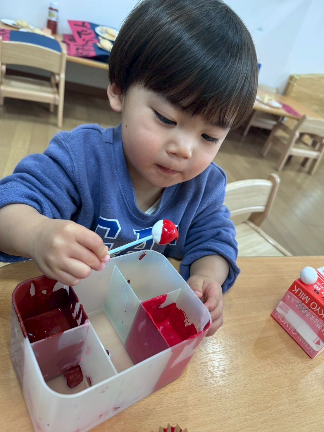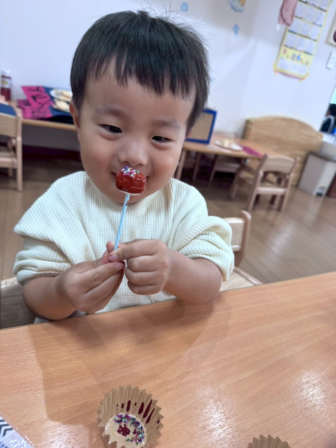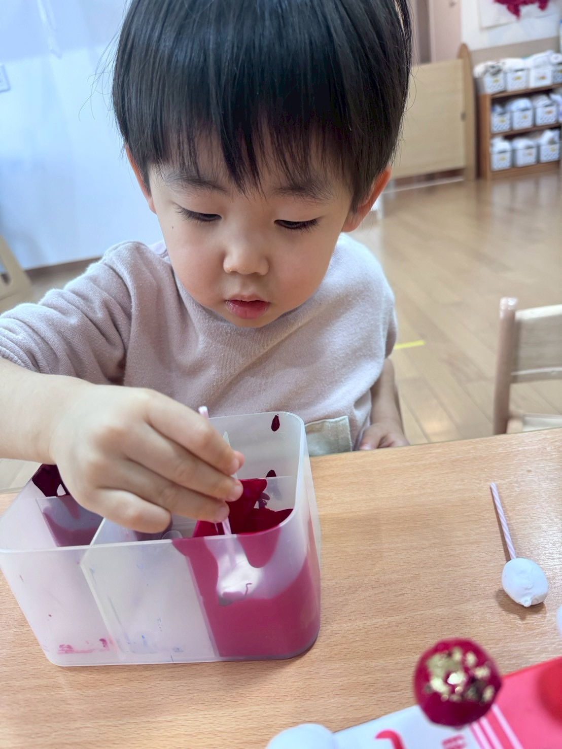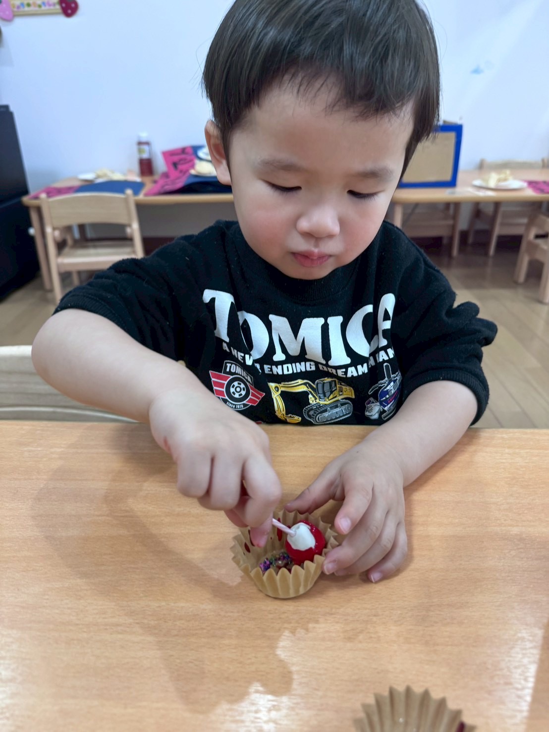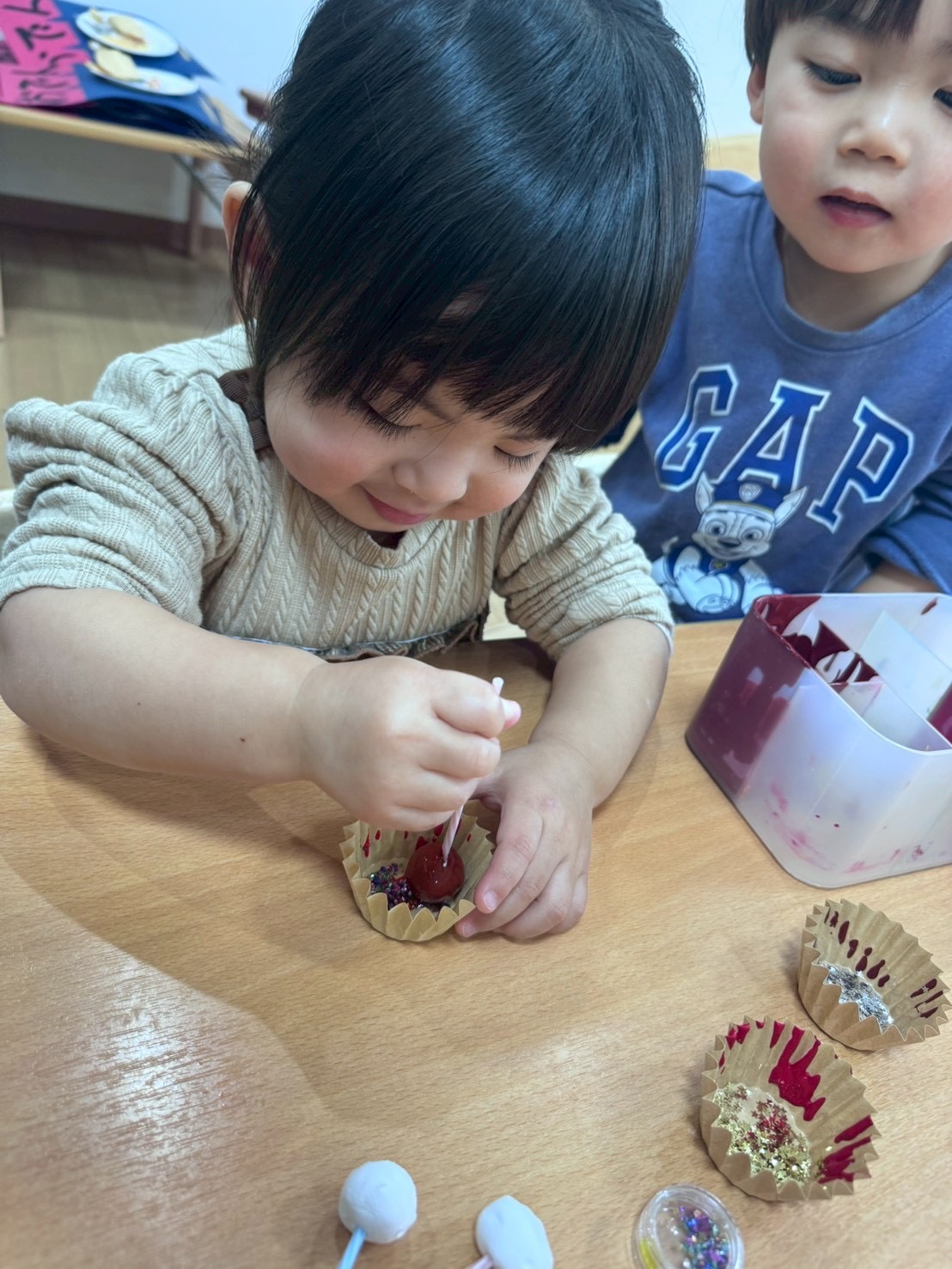 バレンタインデーは大好きな人に好きだよと伝える日だよとお話すると「ママに大好きだよって言う」とお迎えの時に「大好き」と伝えて渡している子どもたちもいましたよ︎💕︎