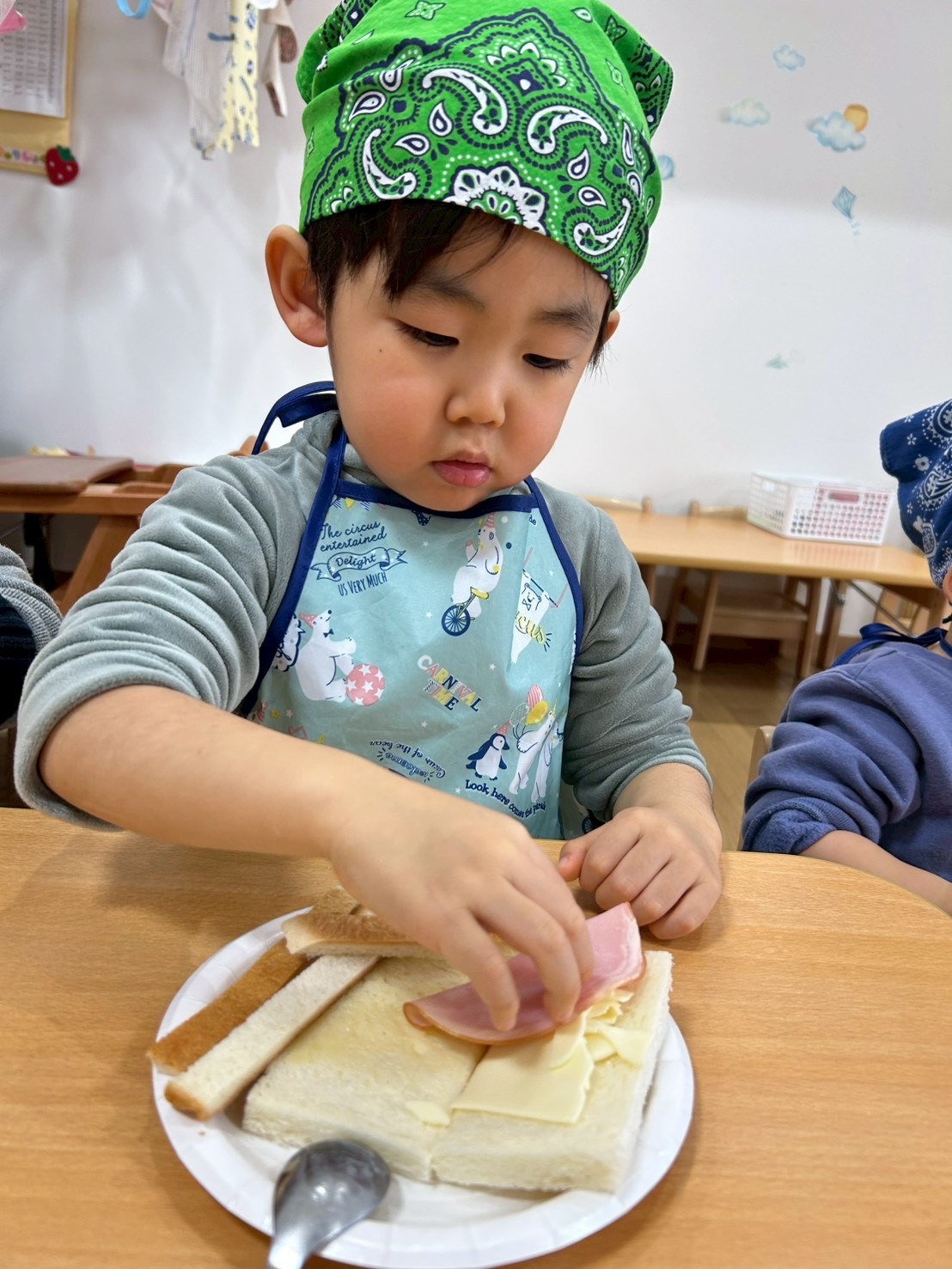 クッキングでは、ハムとチーズのサンドイッチを作りました🍞