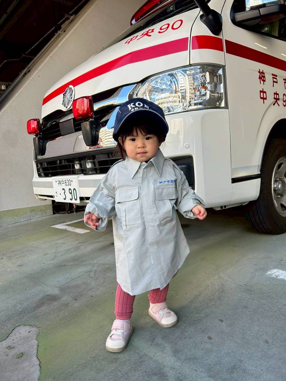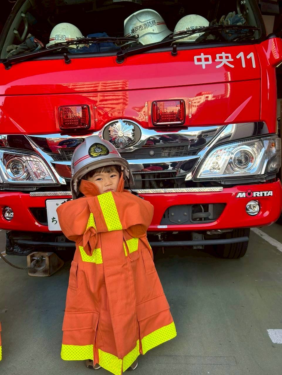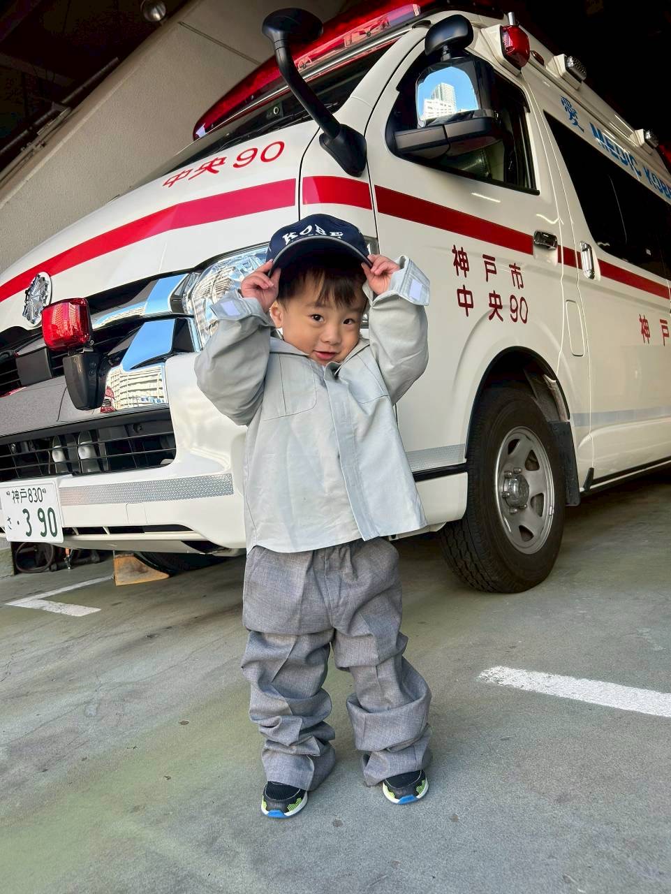 かっこいい消防服と救急服も着用させていただきました🧑🚒少し重そうにしながらもかっこよくポーズもきめてくれてました⭐️