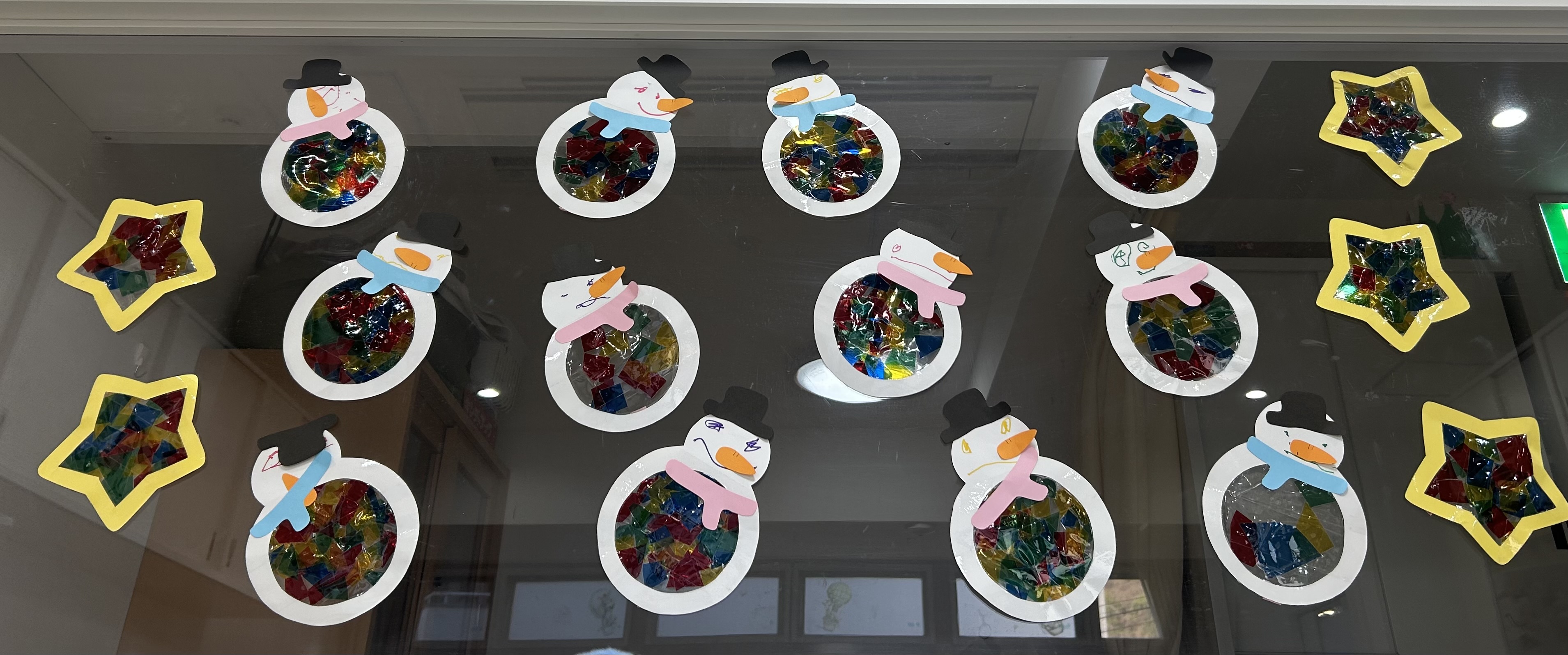 カラーフィルムをペタペタ貼ってステンドグラス風にしましたよ❄️