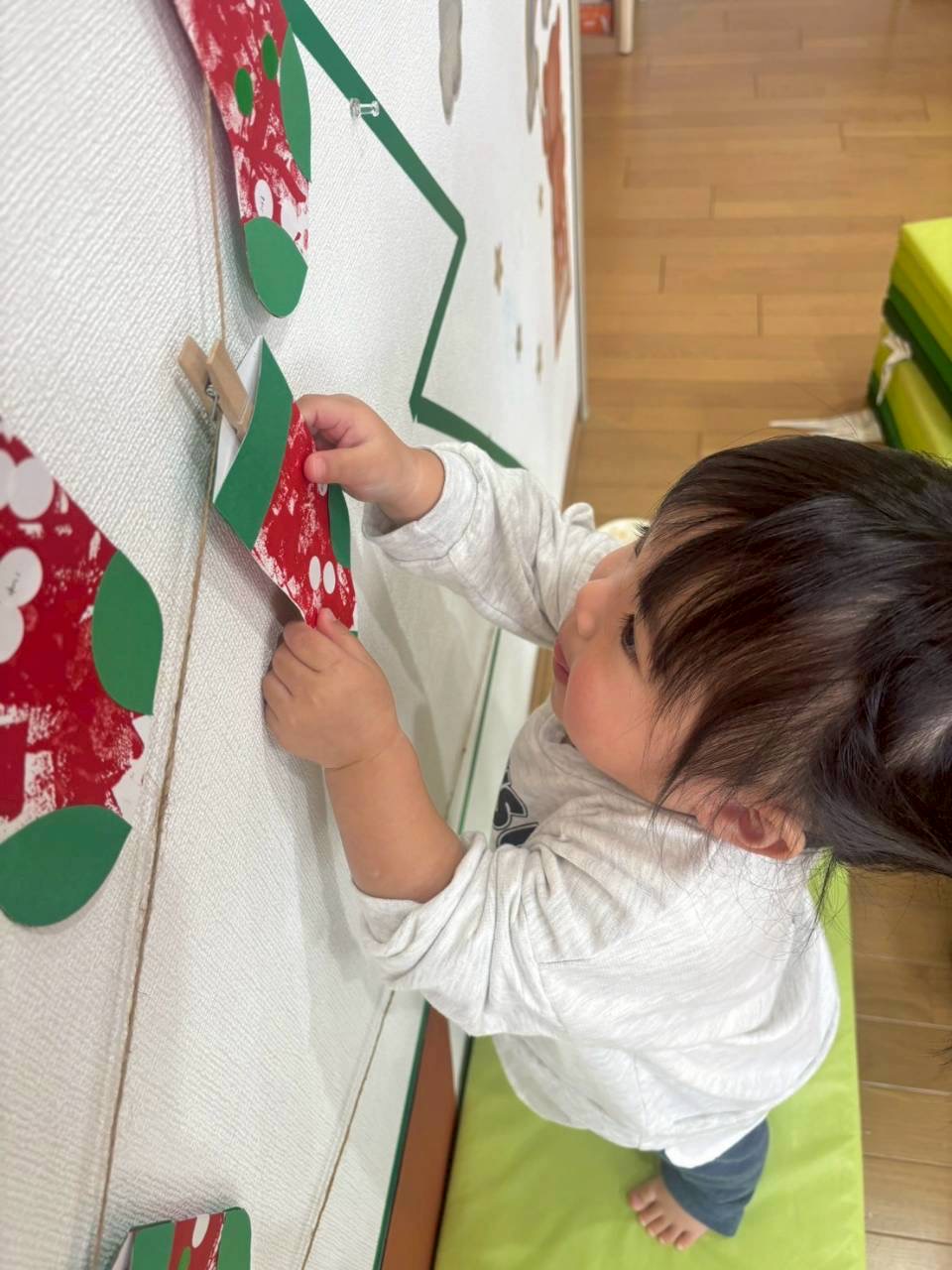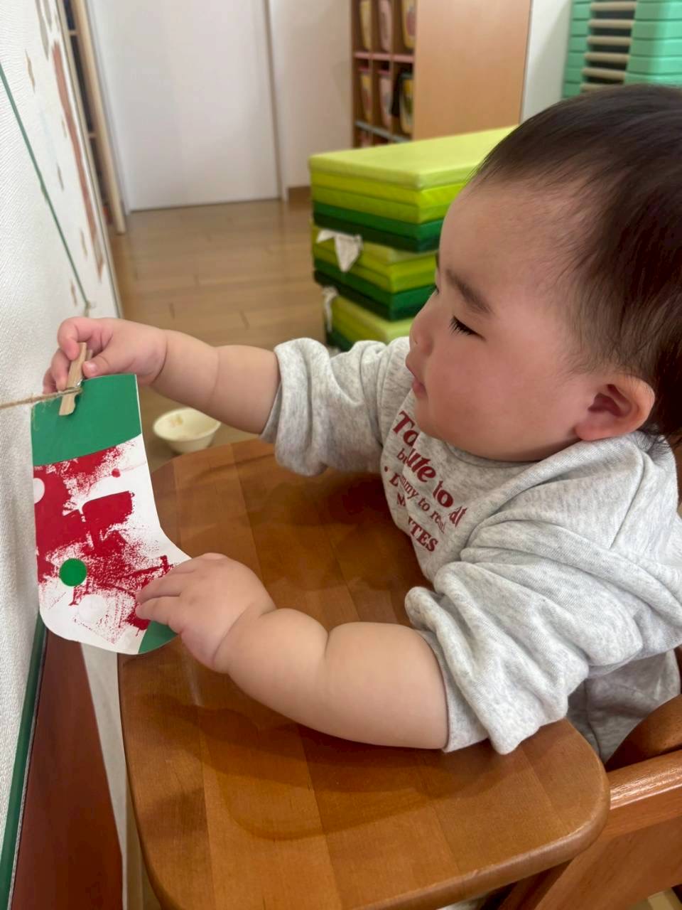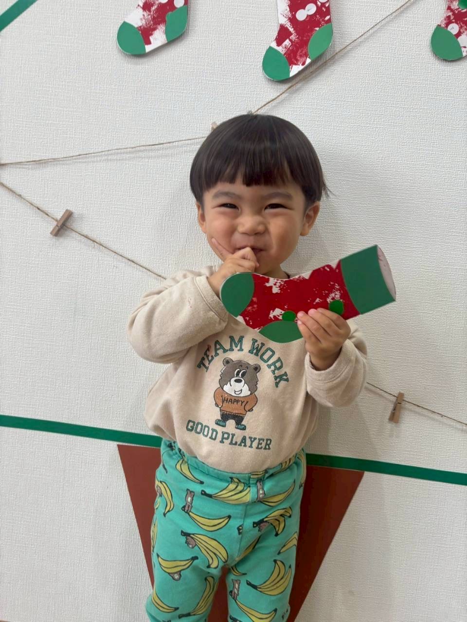 0、1歳児さんはスポンジでぽんぽんっとスタンプして靴下完成❣️