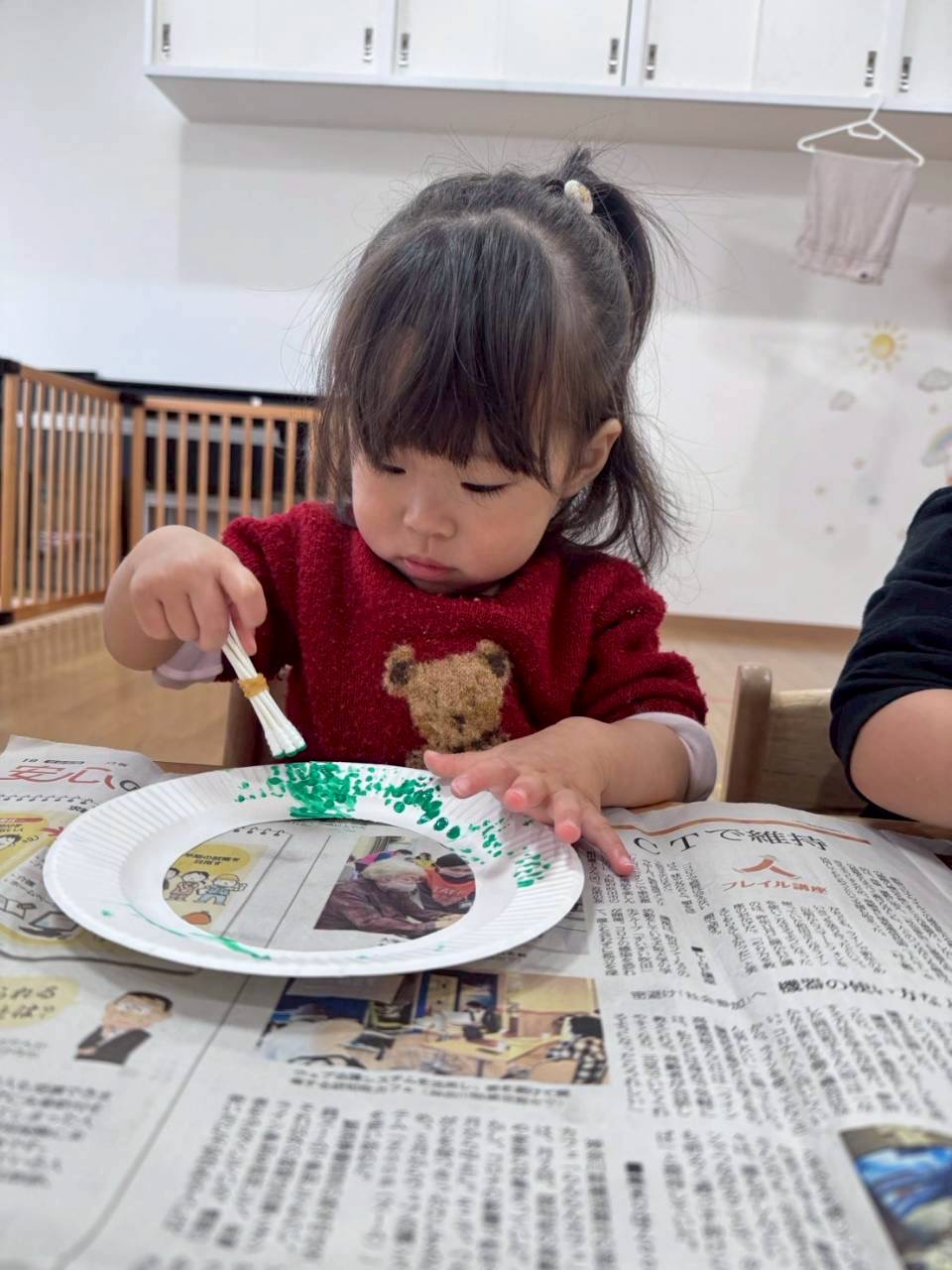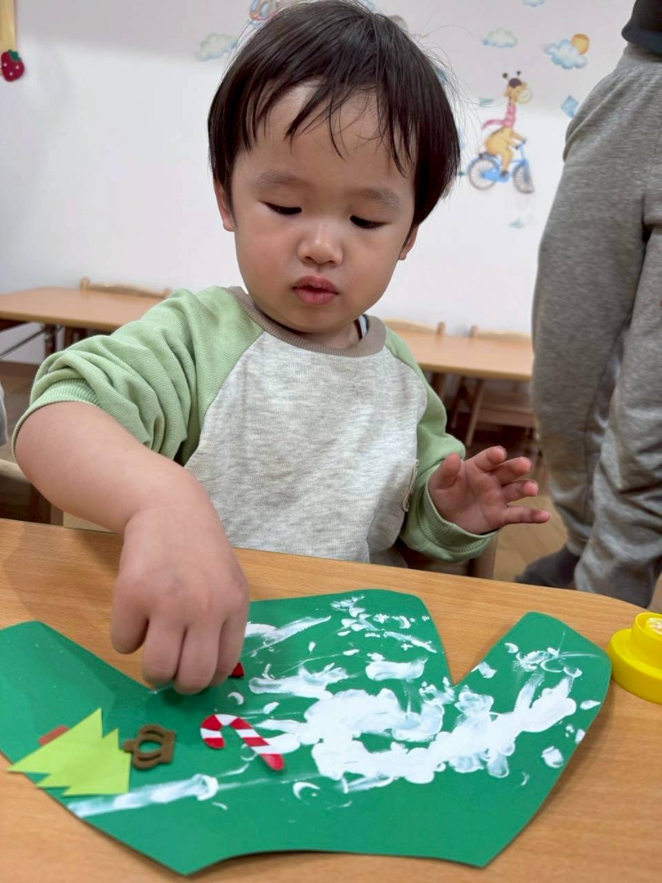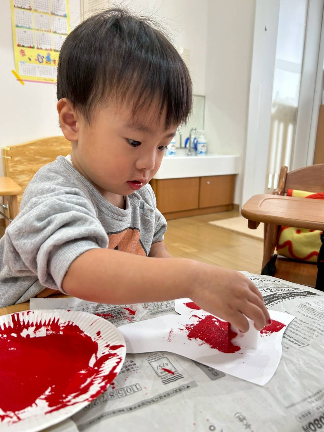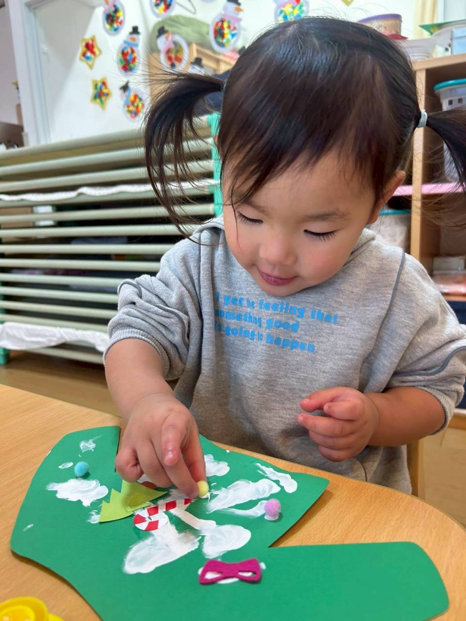 0、1歳児さんはスポンジでぽんぽんっとスタンプして靴下完成❣️
