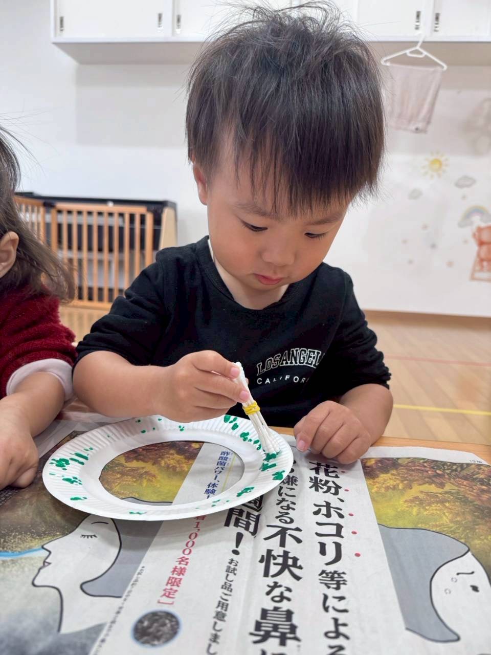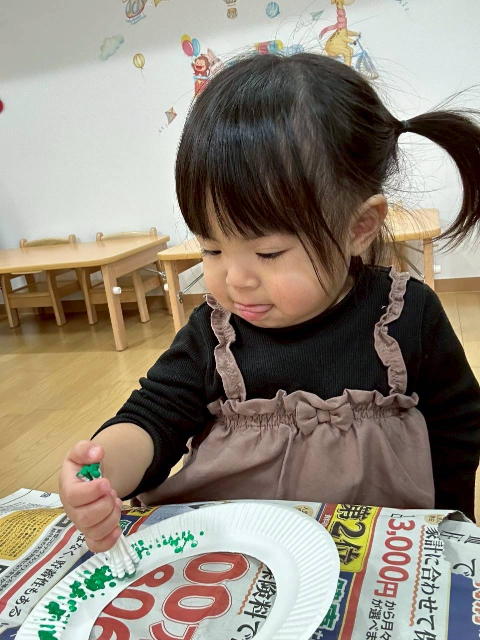 0、1歳児さんは綿棒でスタンプ!