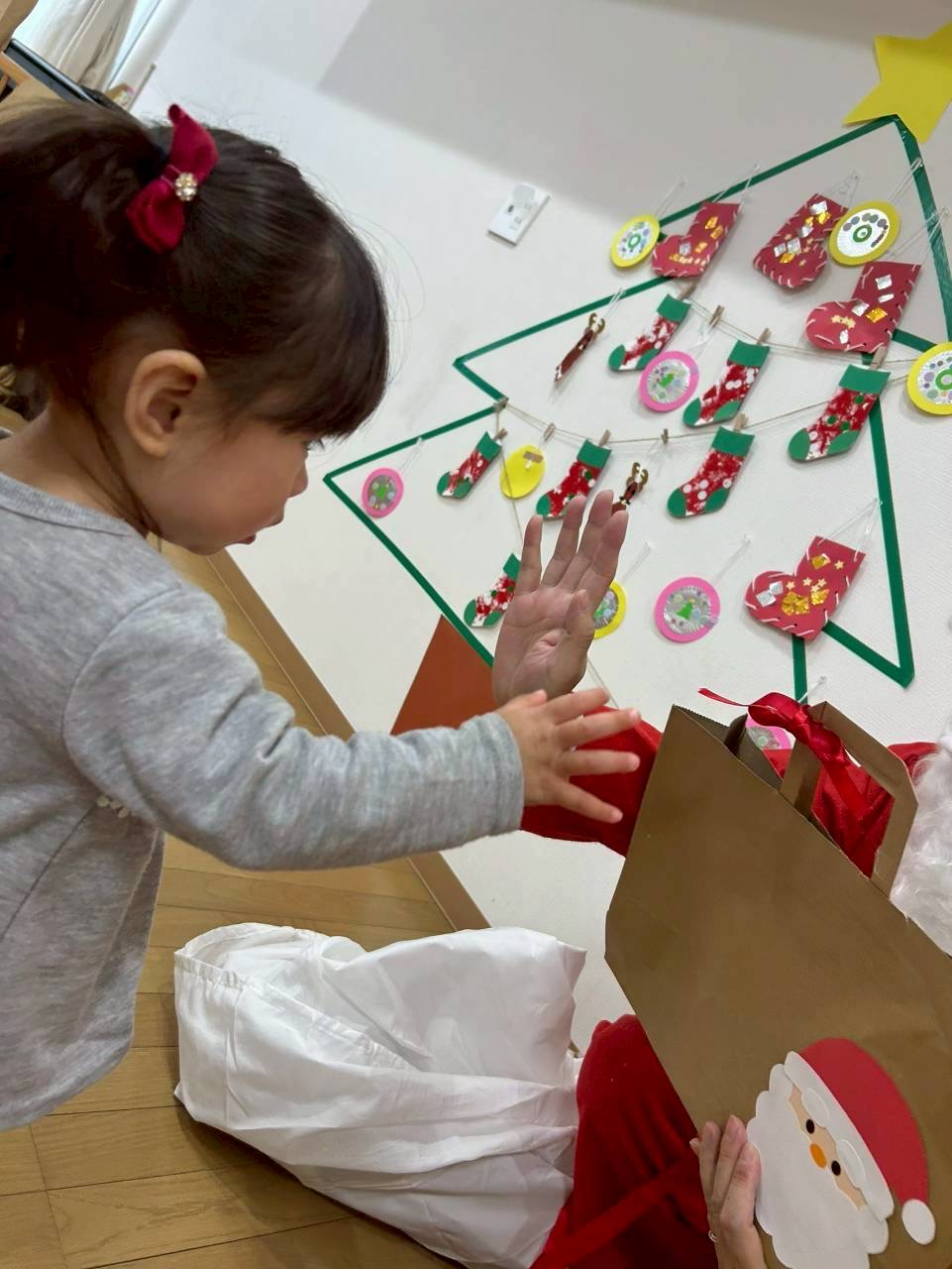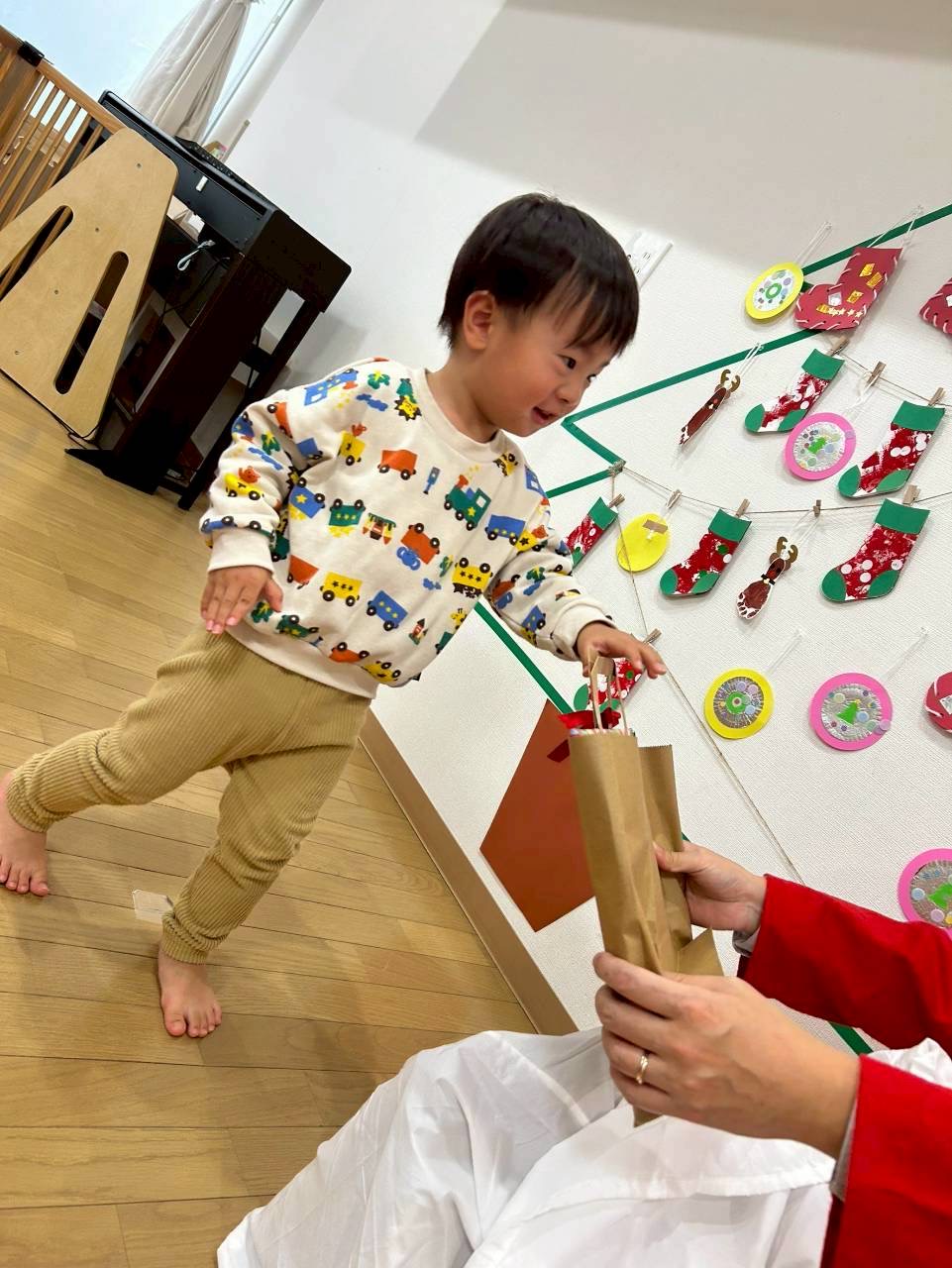 今年もサンタさんがプレゼントを持って会いにきてくれました🎅緊張気味の子どもたちでしたが、プレゼントを貰えて大満足のようでした🌟